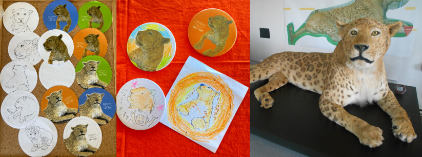 レオポン「ジョニー」の歴史や剥製の復元過程を学んでいただき、剥製を観察しながら、記念の缶バッチを作るワークショップを開催します。